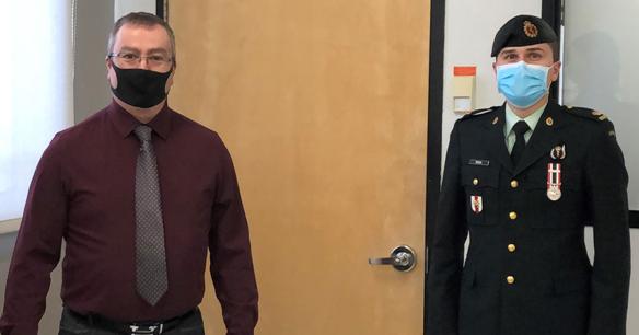 Le major Alexandre Ross a reçu une mention élogieuse en reconnaissance de sa contribution remarquable à la communauté militaire de Bagotville en temps de pandémie en tant que médecin-chef intérimaire. « Il a démontré sans équivoque ses qualités de gestionnaire dans l’exercice de ses fonctions, notamment en supportant les chaînes de commandement de tous les niveaux de la BFC Bagotville, ce qui a indubitablement contribué au maintien des opérations et à la protection de la force », souligne le commandant du 4e Groupe des services de santé.